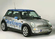 Auf der IAA wird BMW den neuen Mini-Cooper auch mit einem Wasserstoff-Motor vorstellen. Der Vierzylinder unter der Haube ist für eine so genannte kryogene Gemischbildung ausgelegt. Das bedeutet, dass flüssiger und damit extrem kalter Wasserstoff in die Zylinder gespritzt wird. Durch den kühlen Treibstoff wird die Zylinderfüllung vergrößert und parallel dazu die Motorleistung und der Wirkungsgrad. BMW traut dem Wasserstoffmotor im Mini-Prototypen deshalb zu, das gleiche Leistungs- und Verbrauchsniveau zu erreichen wie heutige Benzinmotoren.