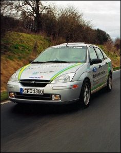 Köln/Hockenheim, 16. September 2002 - Wenn am 23. September die Öko-Rallye "Challenge Bibendum" auf dem Hockenheimring mit Ziel Paris startet, nimmt Ford daran unter anderem mit einem Brennstoffzellenfahrzeug der jüngsten Generation teil. Der Ford Focus FCEV Hybrid (FCEV = Fuel Cell Electric Vehicle) ist erstmals in Europa zu sehen. Er ist ein Hybrid-Fahrzeug, das zwei bereits bekannte Energiequellen zu einer überzeugenden Antriebseinheit zusammenfasst, nämlich Brennstoffzelle und Batterie. Dank dieser "Tandem"-Technologie erreicht der Ford Focus FCEV Hybrid exzellente Fahrleistungen bei geringem Kraftstoffverbrauch und Null Emissionen. Kein anderer Brennstoffzellenantrieb ist stärker, dynamischer und zugleich sauberer als die im Ford Focus FCEV Hybrid zum Einsatz kommende Lösung. Und: Der Ford Focus FCEV Hybrid ist kein Forschungs- oder Experimentalfahrzeug mehr, sondern ein serienreifes Auto. Den Beginn der Vermarktung von Brennstoffzellenfahrzeugen plant Ford ab dem Jahr 2010.