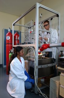 Damit die Cluster den gewünschten Effekt im Wasserstoffspeicher erzielen, wird eine geringe Menge davon mit dem Speichermaterial Natriumalanat vermischt und das Gemenge unter Luftausschluss sehr fein gemahlen. Dadurch entsteht eine innige Mischung der beiden Komponenten, ein so genanntes Nanokomposit. Dieses ist das eigentliche Speichermaterial. Die Ergebnisse der Karlsruher Forscher werden in der Juni-Ausgabe der Zeitschrift "Nanotechnology" veröffentlicht (Nanotechnology 14, 2003, S. 778-785).