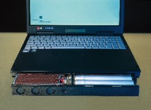 Bereits 1998 stellte das Fraunhofer Institut für Solare Energiesysteme auf der Hannover Messe den ersten Prototypen eines Brennstoffzellen-betriebenen Laptops vor, damals jedoch nochm it externerm Mini-Kraftwerk.