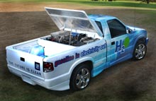Traverse City, Michigan - GM stellte vor kurzem einen Chevrolet S-10 Pickup mit Brennstoffzellen und einem neu entwickelten Onboard-Benzin-Reformer vor. Der Reformer names Gen III stellt dabei während der Fahrt aus Benzin Wasserstoff zum Betrieb der Brennstoffzelle her.