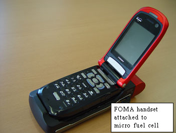 Tokio, 30. September 2004 - Der japanische Mobilfunkriese NTT DoCoMo hat heute den Prototyp eines Brennstoffzellen-Handys vorgestellt. Der von Fujitsu produzierte Prototyp soll den 3G FOMA eine längere Betriebszeit ermöglichen.