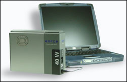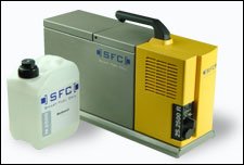Manfred Stefener, Geschäftsführer und Unternehmensgründer von SFC, zeigte in einer Pressekonferenz zusammen mit Entwicklungsleiter Dr. Jens Müller das seit Januar 2002 in einer Kleinserie produzierte Kraftpaket "Remote Power System". Mit seinem austauschbarem 2,5 Liter Methanol-Tank stellt das System 2,5 kWh elektrischer Energie bereit. Seine Ausgangsleistung beträgt bis zu 80 Watt. Das Produkt ist für den Einsatz in Verkehrstechnik, Umwelttechnik, Camping und Freizeit geeignet. Stefener: " Durch die Betriebsbereitschaft bei einer Lufttemperatur von Minusgraden bis plus 40° Celsius ist das System bestens für den Einsatz auch in ungeschützter Umgebung geeignet. Die Zuverlässigkeit der Systeme wurde im Rahmen intensiver Testprogramme auch unter Extrembedingungen verifiziert. Mit mehreren Kunden sind bereits Vereinbarungen über Feldtests getroffen worden, welche in den nächsten Wochen starten werden."