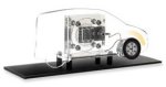 Funktionsmodell eines Wasserstoff-Brennstoffzelle-Autos, das mit einer reversiblen Brennstoffzelle ausgestattet ist. Damit ist es möglich über eine externe Stromzufuhr (Solarmodul oder Netzteil) den Treibstoff in Form von Wasserstoff selbst herzustellen.