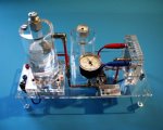 Beim Junior Basic sind alle Komponenten wie Solarzelle, Elektrolyseur, Wasserstoff-/ Sauerstoffspeicher, Brennstoffzelle und elektrischer Verbraucher versuchsbereit montiert. Inklusive detailliertem Handbuch. [mehr...]