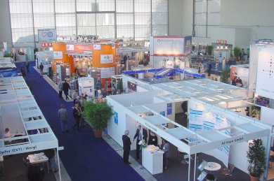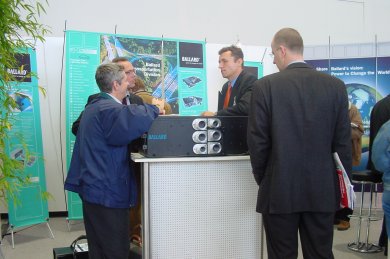 | | Im Vordergrund der H2-Expo Stand, im Hintergrund das Kompetenznetzwerk Brennstoffzelle NRW und die HEW mit der Hamburger Hochbahn |