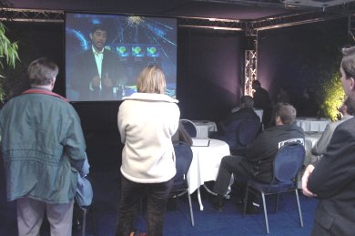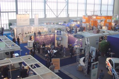 | | Im Mittelpunkt des Bildes der Stand von Norsk Hydro, rechts Ford. |