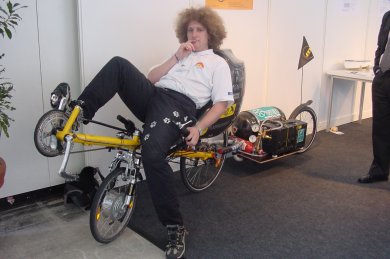 | | Der Student Jörg Weigl präsentierte sein BZ-Liegefahrrad. |